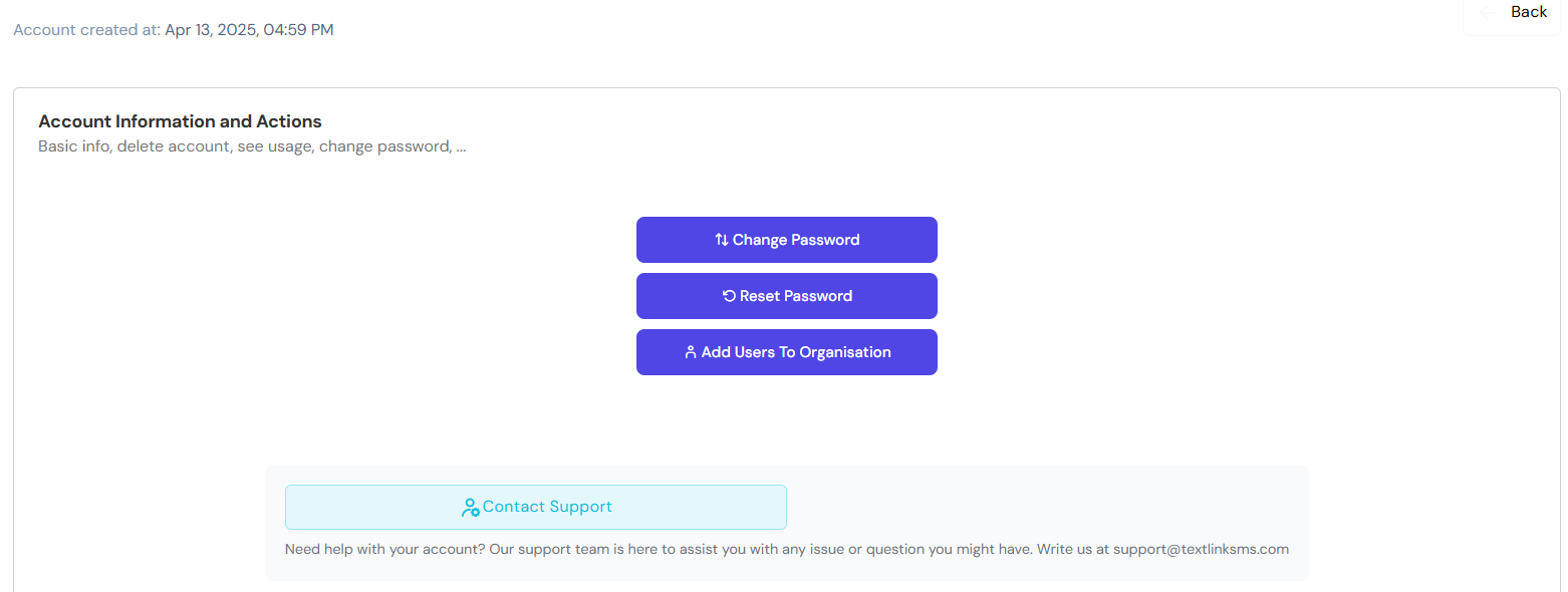 Manage and create new subaccounts. You can learn more about this on the [Team documentation page](https://docs.textlinksms.com/team).&#x20;