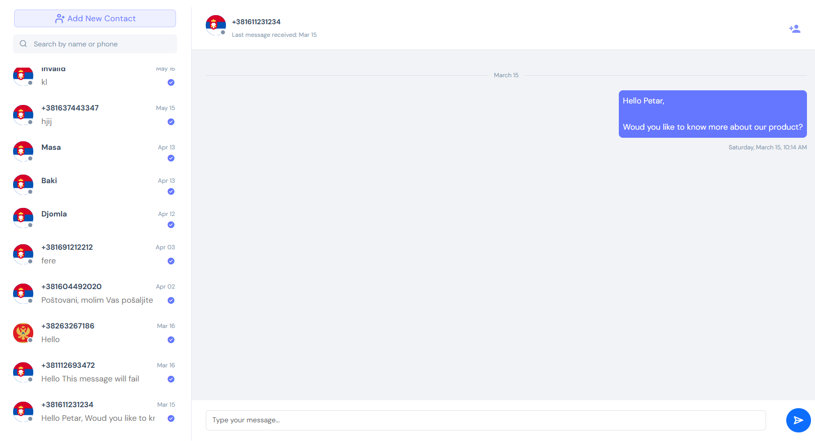 Access all the messages you have sent, create contacts and chat with them.